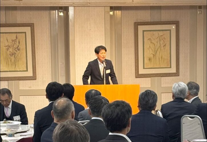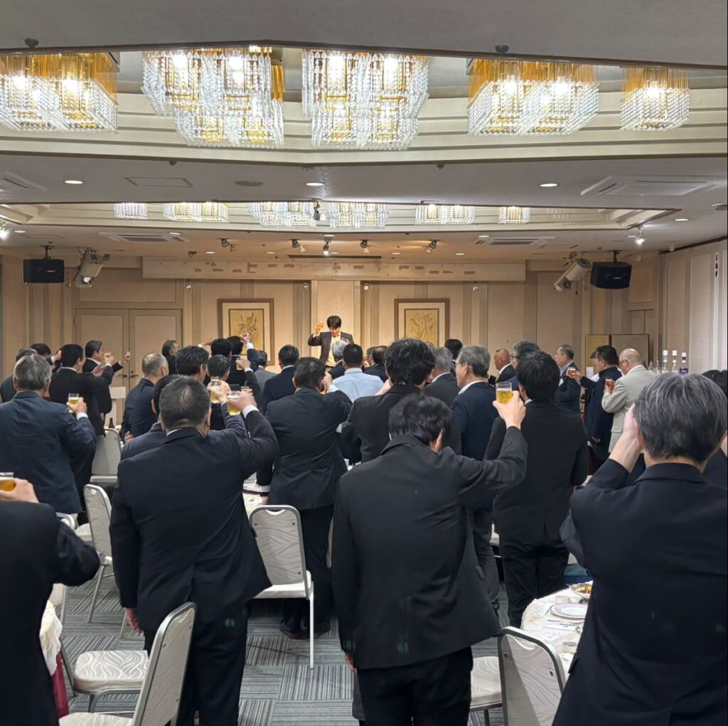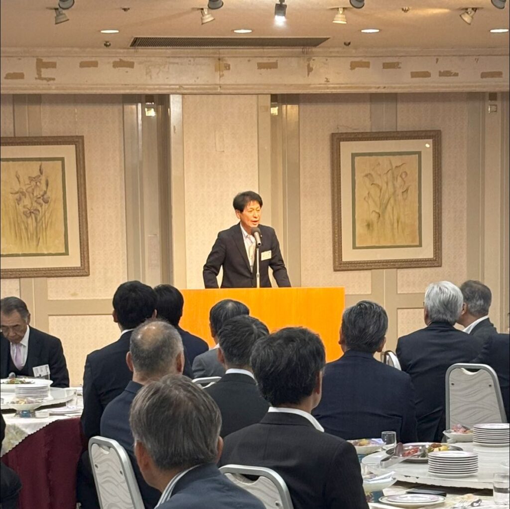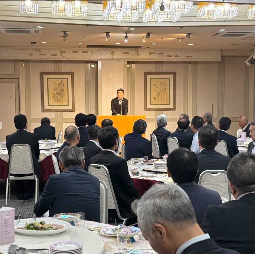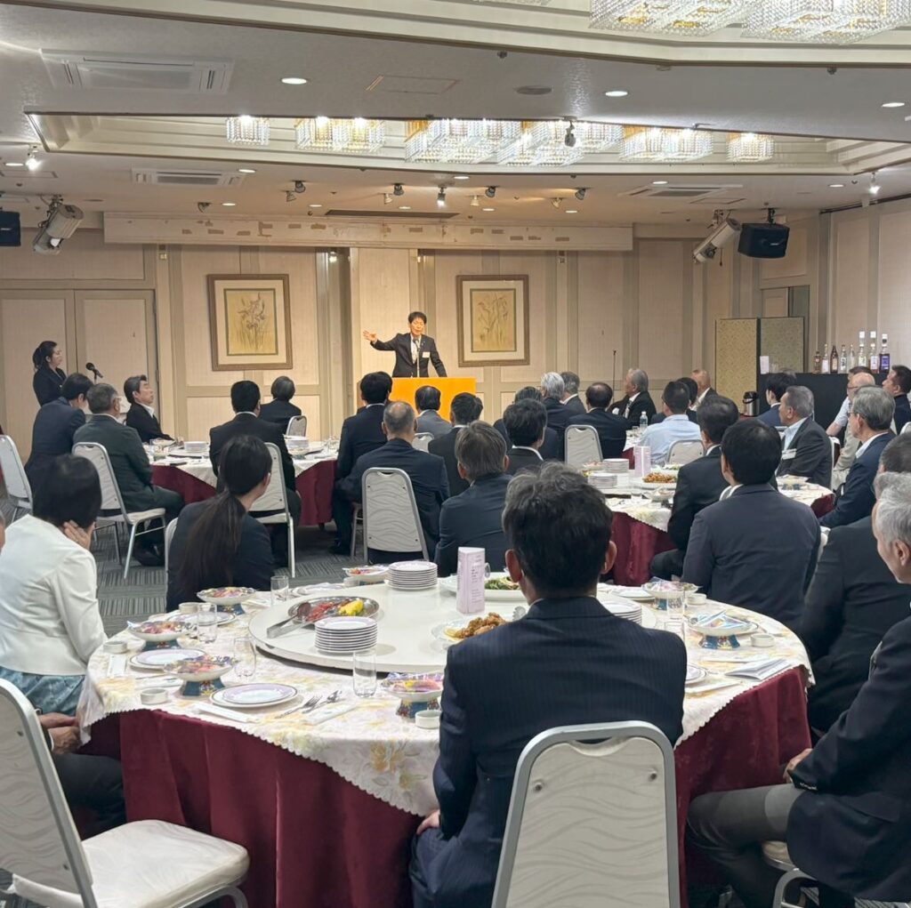 懇親会には来賓として藏原隆浩玉名市長、西川裕文副議長、玉名商工会議所の安原光則副会頭、玉名青年会議所の井手健輔理事長も出席。白石正嗣会長は挨拶の中で、有明海沿岸道路を完成させる意義について力説されました。
