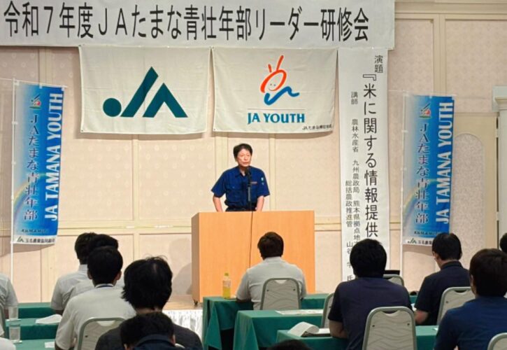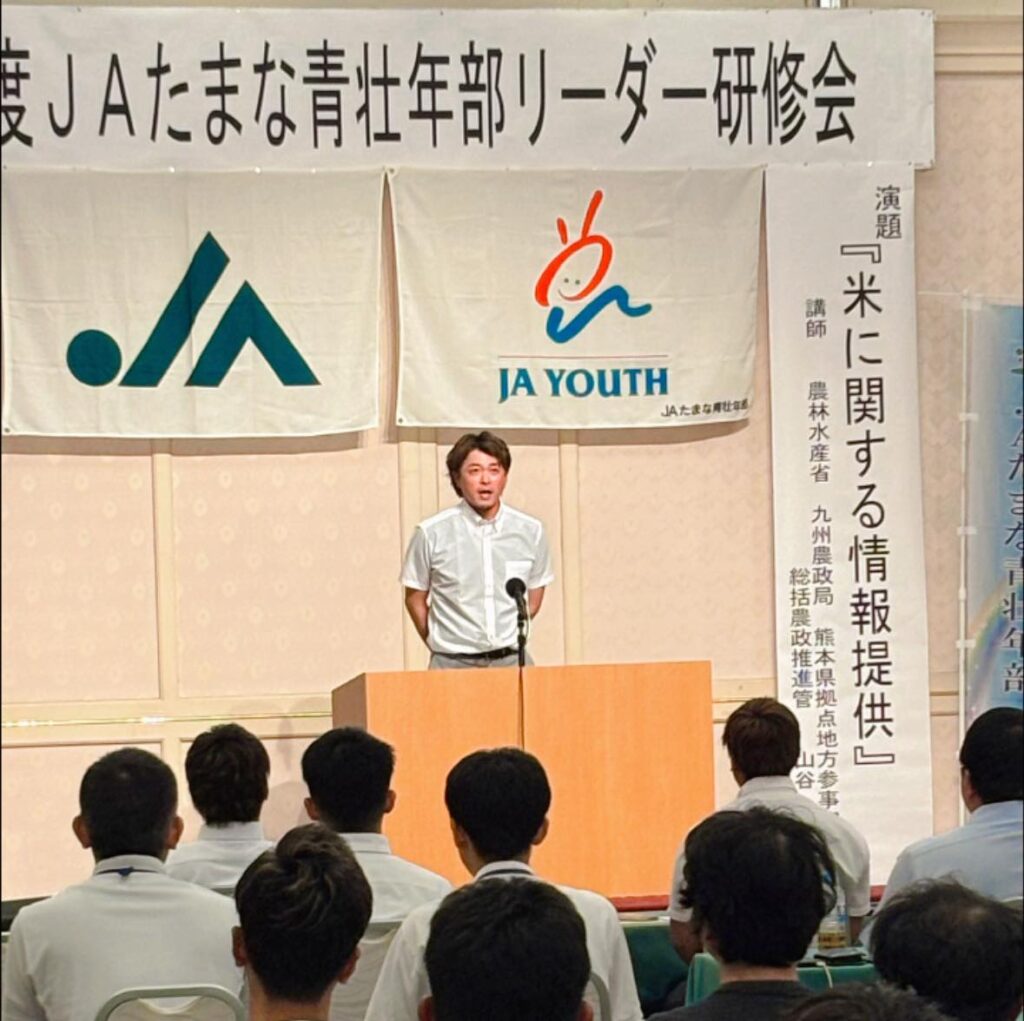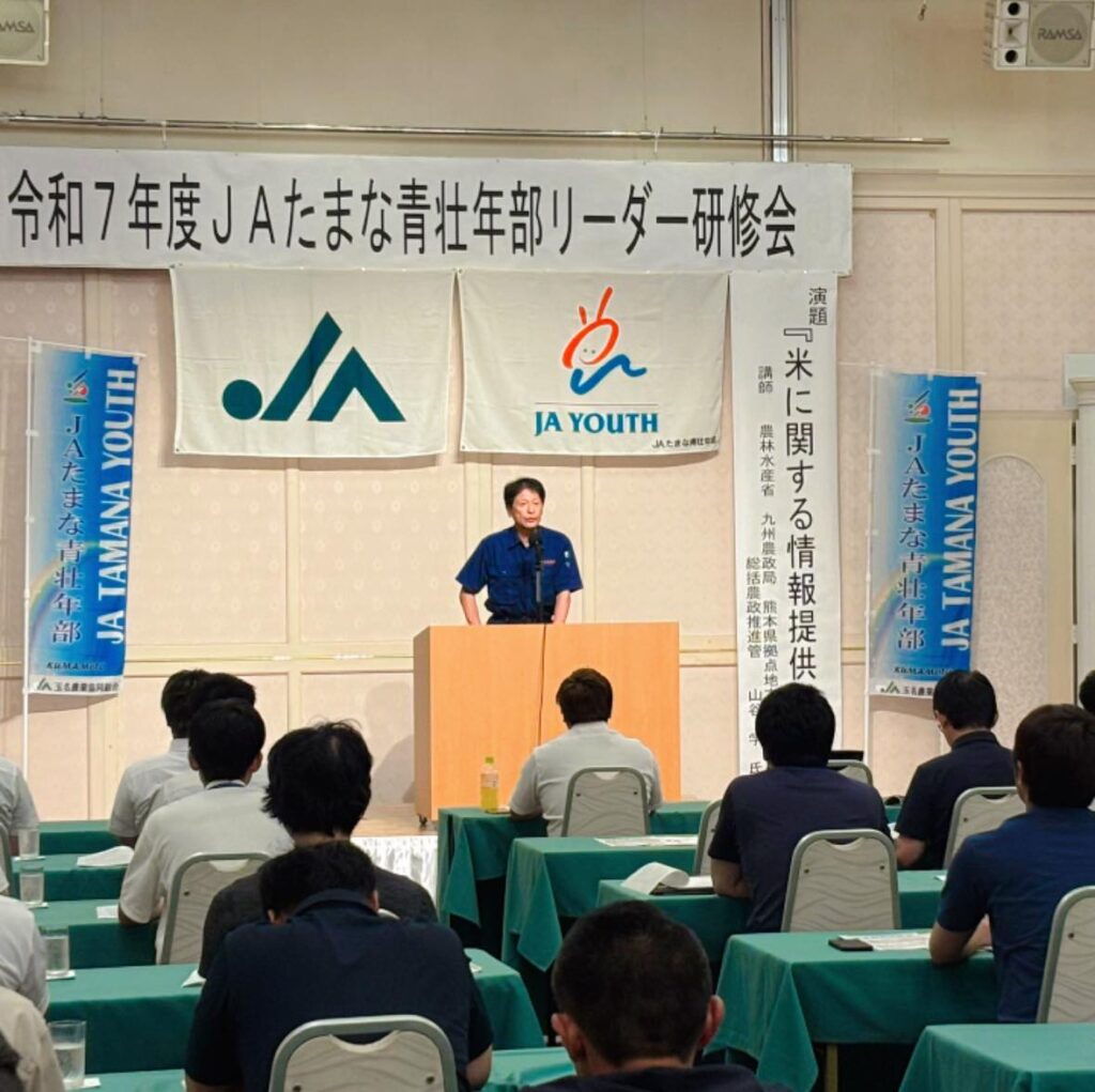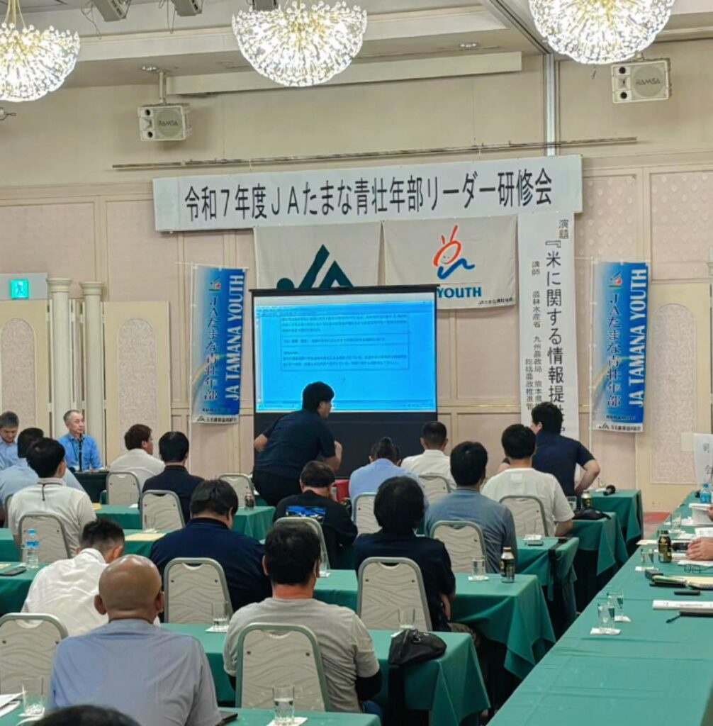 研修会では米に関する講演も行われ、率直な意見交換が行われました。あらためて政治の役割の大きさを感じました。JAたまな青壮年部の益々の発展と未来を担うリーダーの皆様のご活躍を祈念いたします。