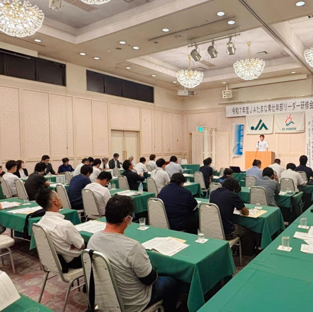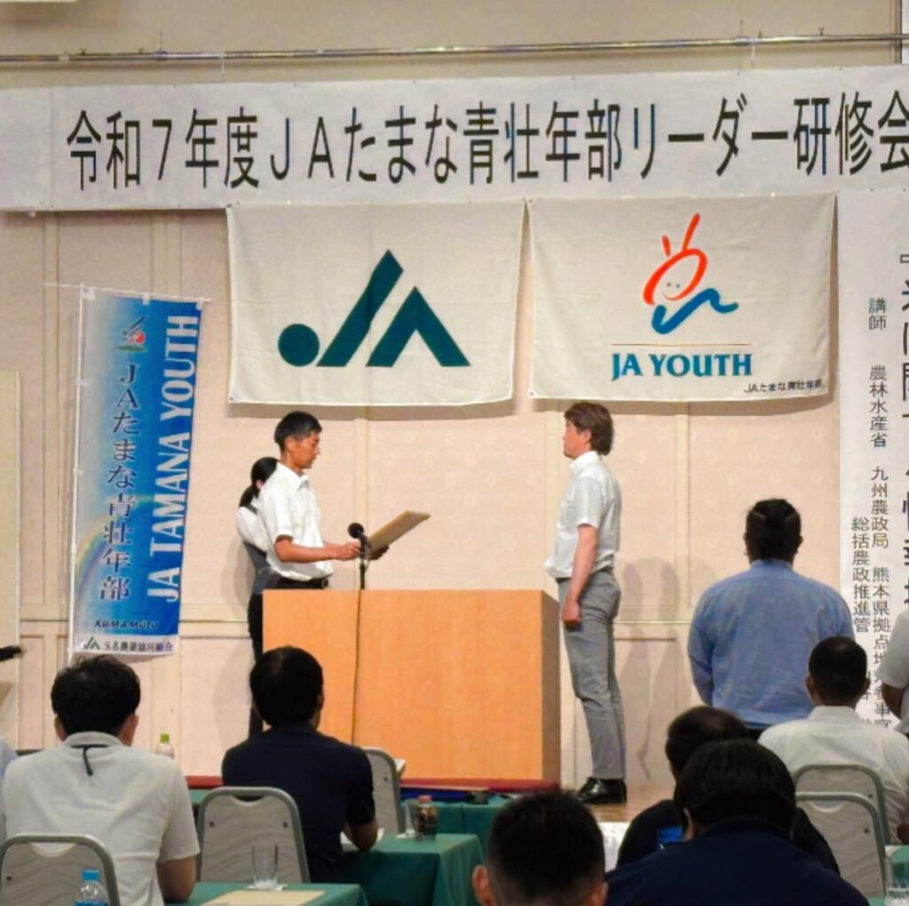 8月21日(木)、ホテルしらさぎにてJAたまな青壮年部リーダー研修会が開催され、出席いたしました。豪雨災害の対応中ということもあり防災服で参加し、挨拶をさせていただきました。
