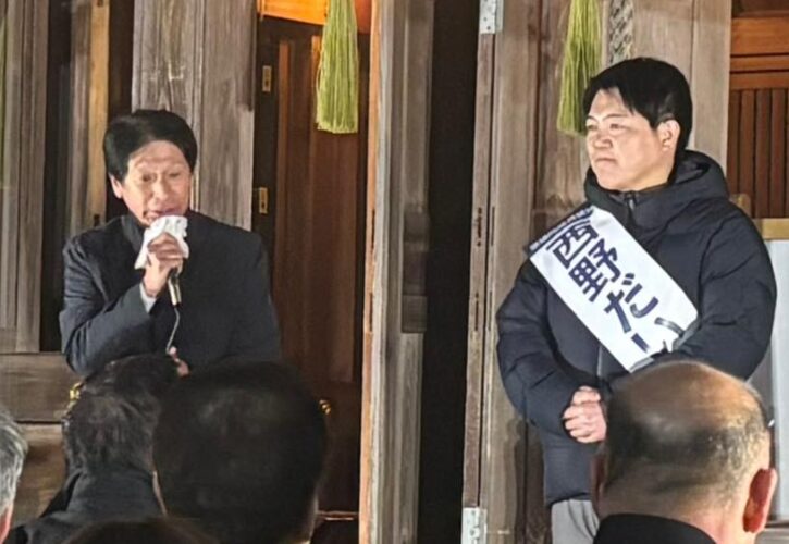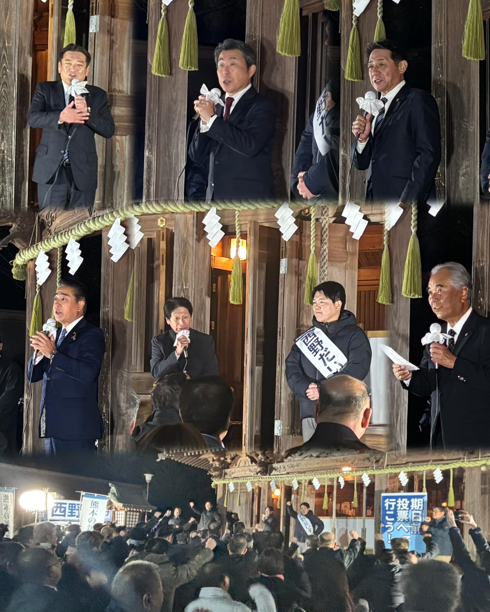 1月27日(火)19時より繁根木八幡宮にて西野だいすけ玉名郡市出陣式が執り行われ、必勝コールを担当いたしました!玉名郡市の皆さま、心一つに西野だいすけの必勝に向けて情熱を注いで参りましょう!よろしくお願いいたします!