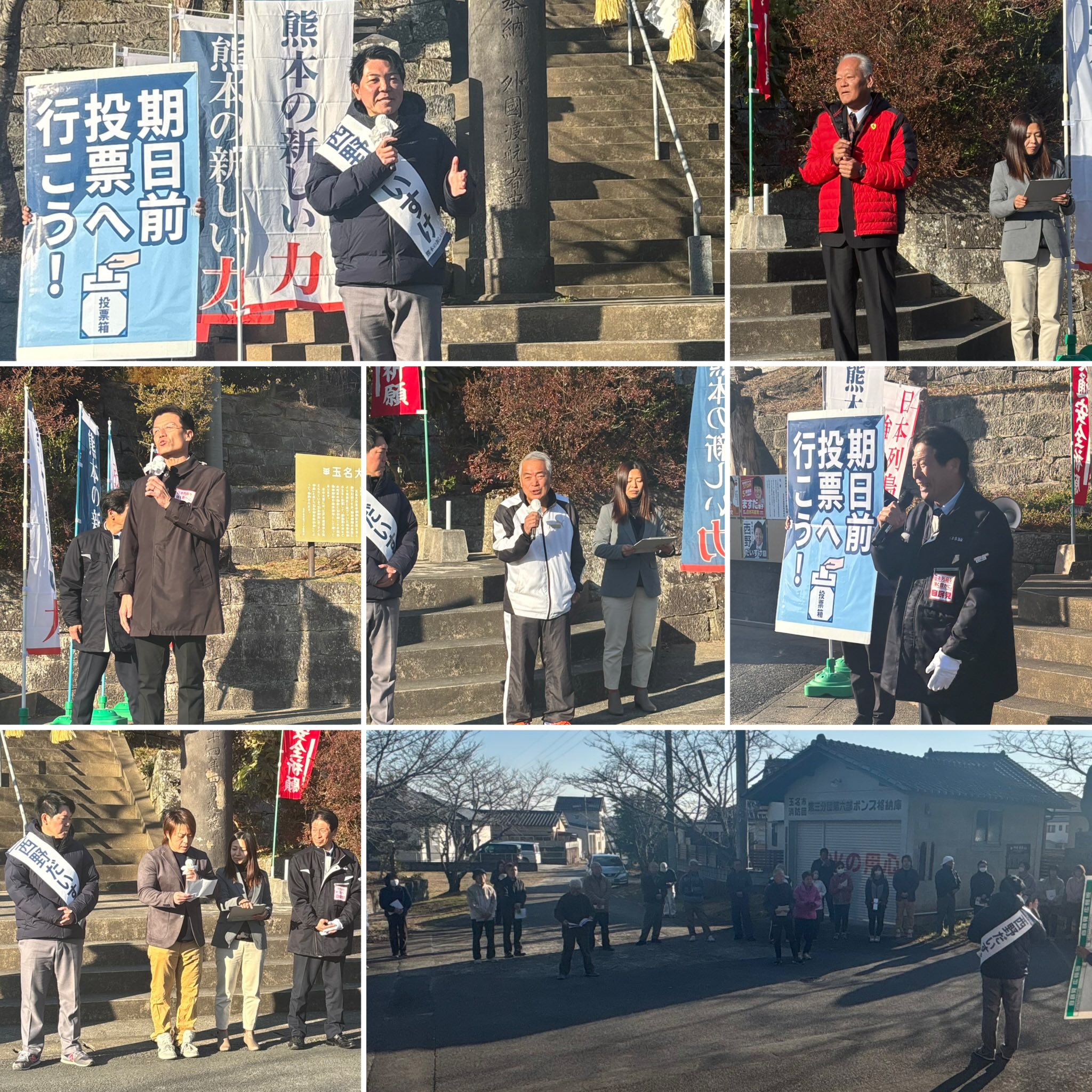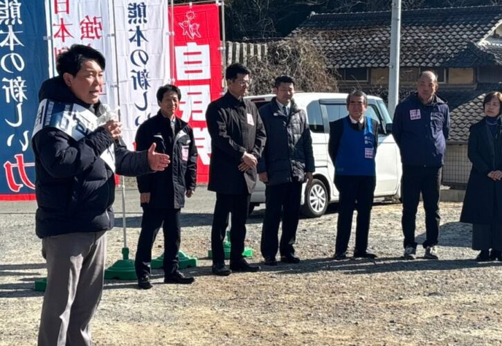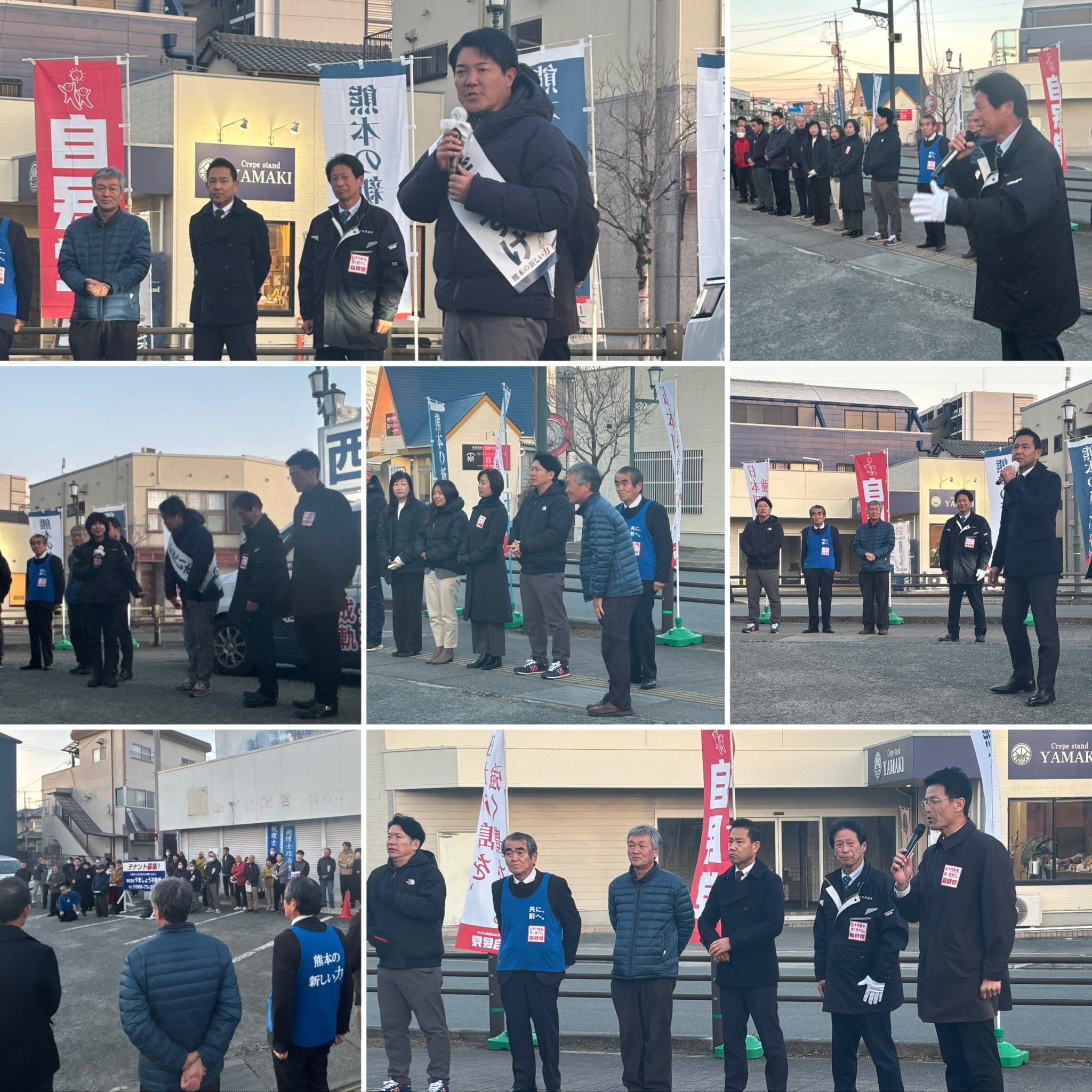 2月3日(火)、13時よりJAたまな本所にて街頭演説会を行い、玉南校区へ。伊倉南八幡宮、風の丘、さくら苑、岱明運輸新玉名倉庫、玉名大神宮、無岐乃古(むぎのこ)にて演説会が実施され、たくさんの方にお集まりいただきました。