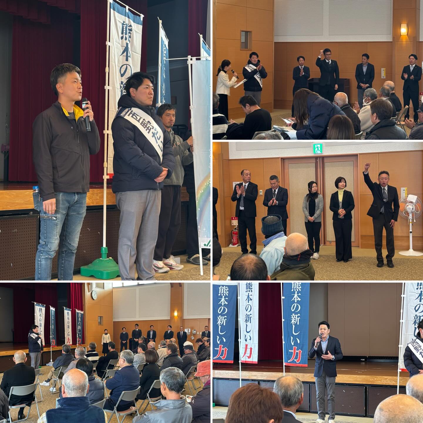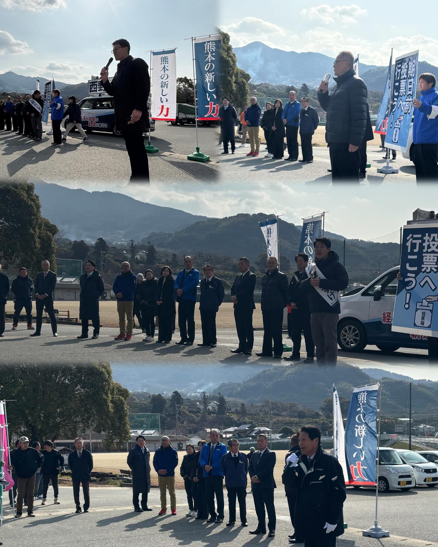 1月29日(木)、西野だいすけ玉名遊説に同行いたしました。天水グラウンドでの街頭演説会、そして横島町公民館と岱明ふれあい健康センターでの個人演説会にたくさんの地域の皆さまにお集まりいただきました。