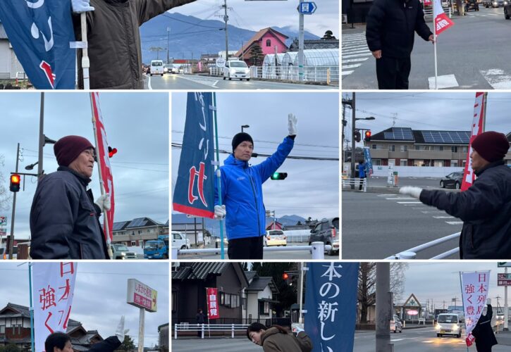2月5日(木)、朝から横島町にて街頭活動を行いました。西野だいすけ候補の必勝に向けて、昨日も無岐乃古(むぎのこ)前にて朝の街頭活動を行いました。