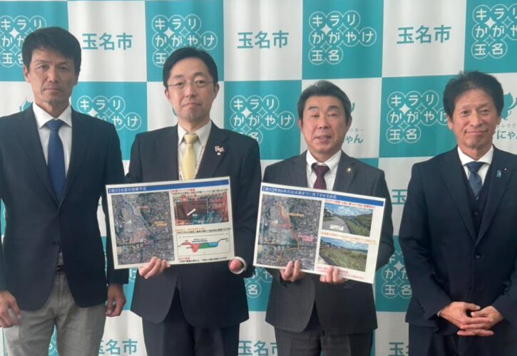 12月15日(月)、木村知事が玉名市役所を訪れ、藏原市長と対談し、木村知事から境川の改修予定や対応について報告がありました。
