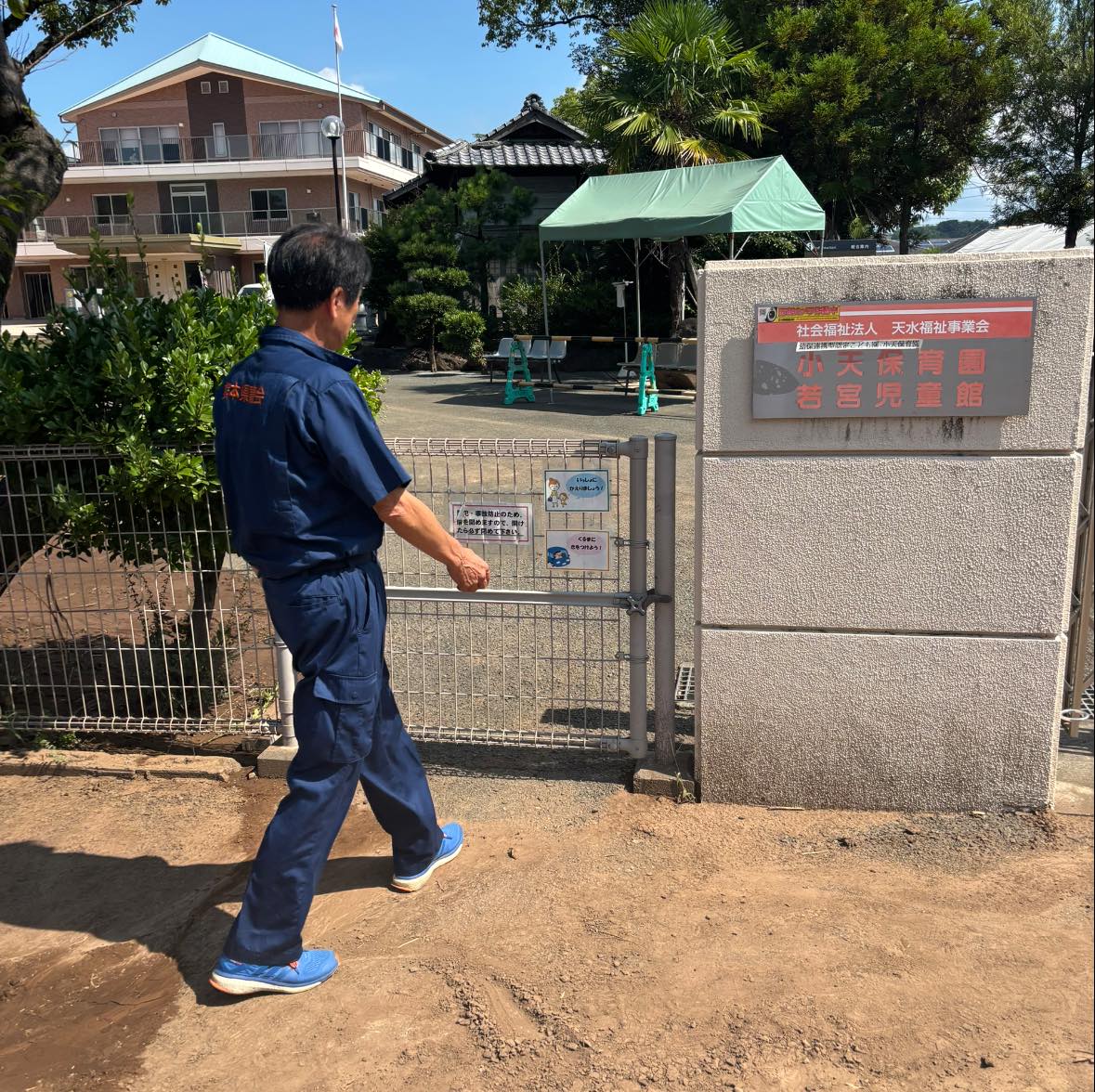 その後、天水の小天保育園に行きました。懸命な復旧作業のかいもあり、今日から保育を再開したとのことでした。