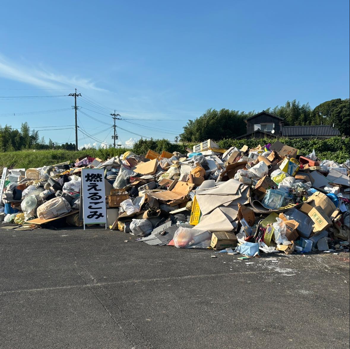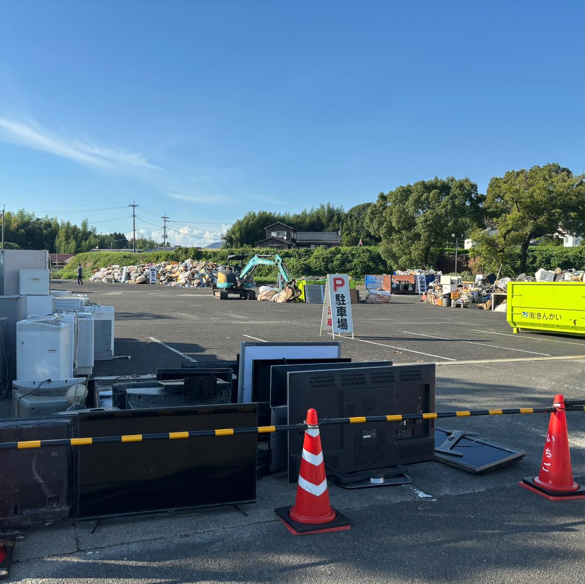 昨日から岱明B&G海洋センター駐車場にて令和7年8月10日からの大雨による災害ごみ仮置場が開設されています。