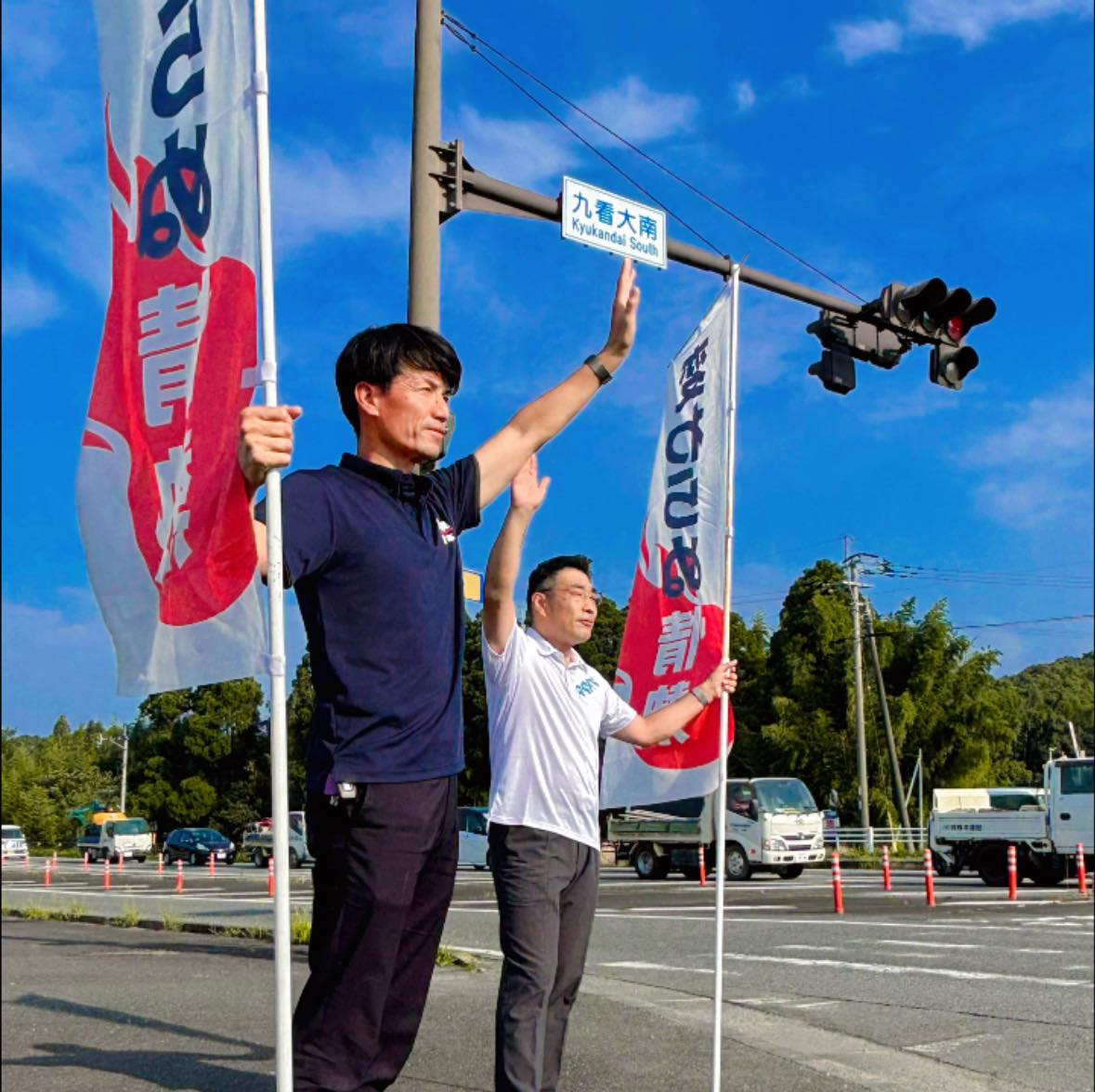 参院選15日目を迎えた7月17日(木)、九看大南交差点にて馬場せいし候補の必勝に向けた街頭活動を行いました。通行中のたくさんの皆さまから激励をいただき、ありがとうございました!