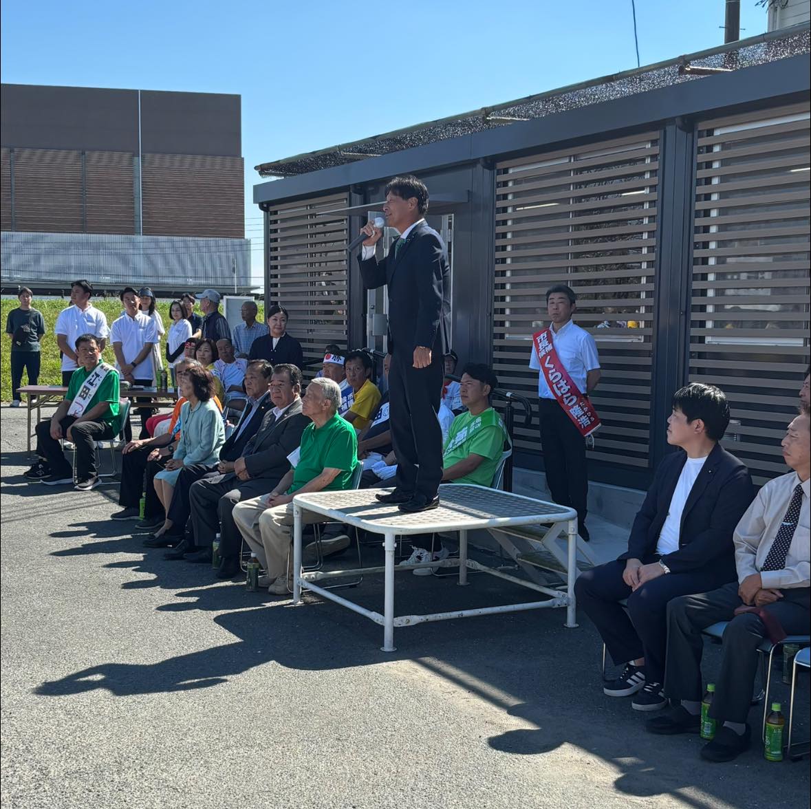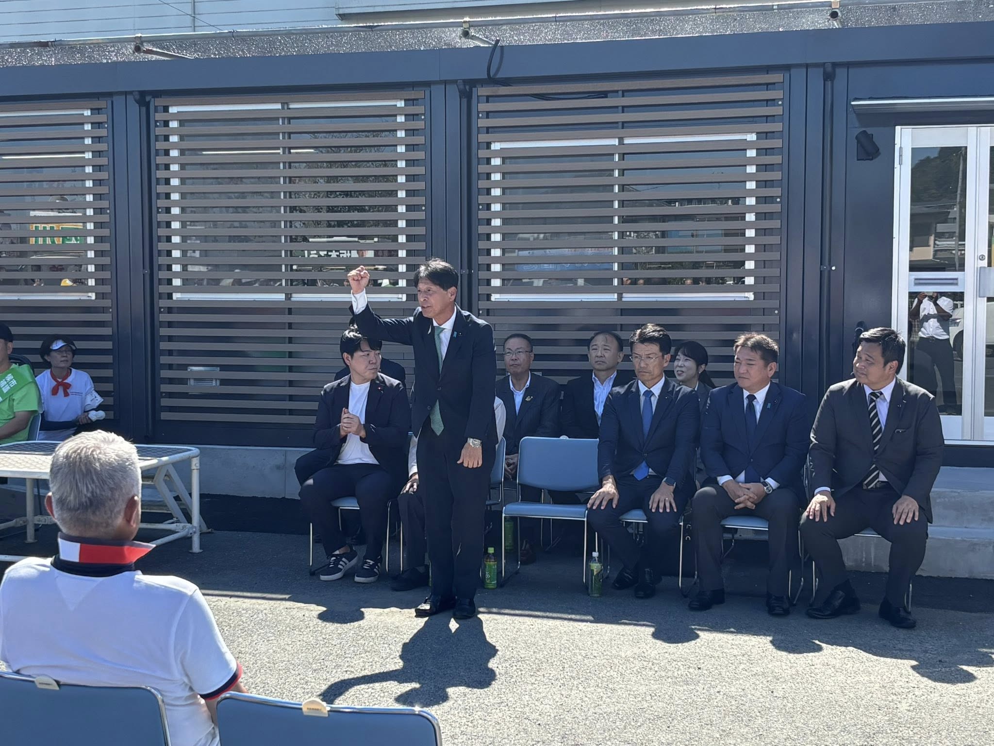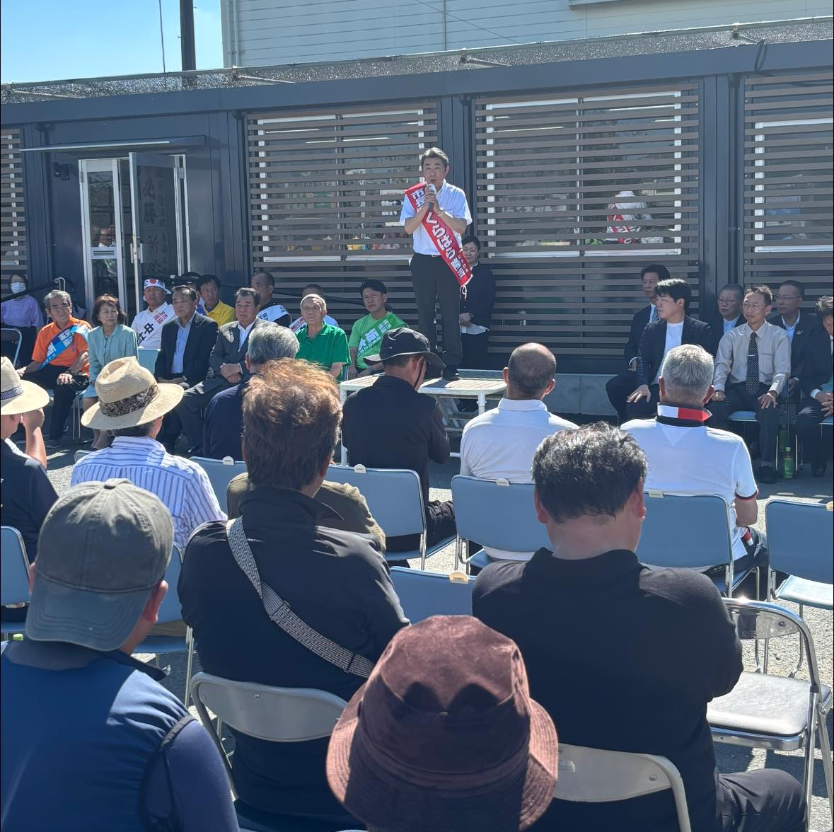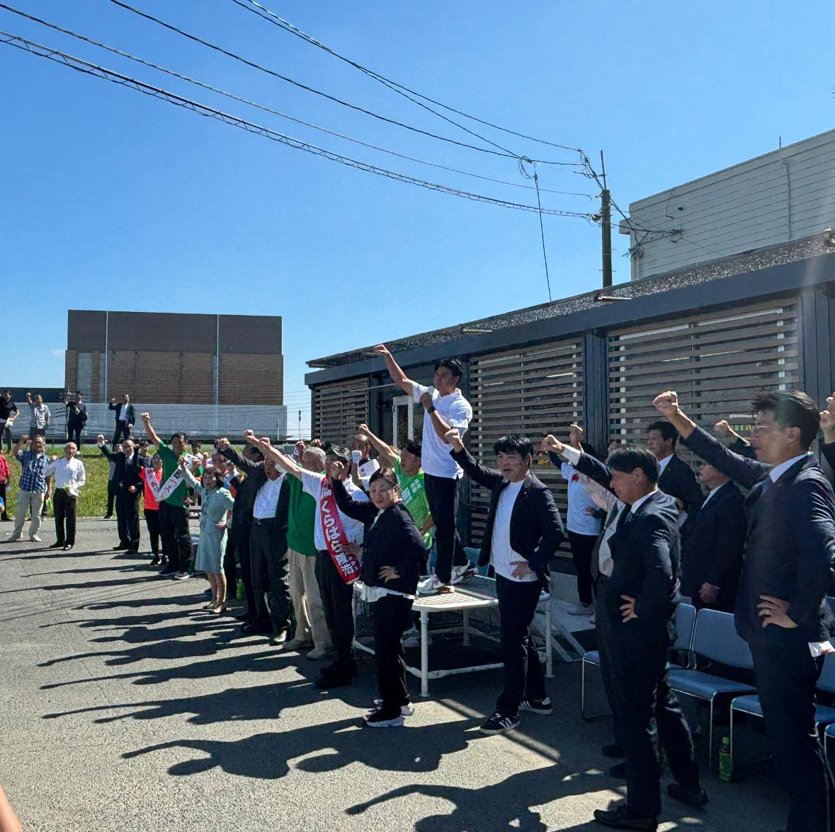 出陣式には、西野だいすけ衆議院議員、荒玉地域の首長・県議、さらに玉名市議会議員と候補者が多数集まり、必勝を誓い合いました。
