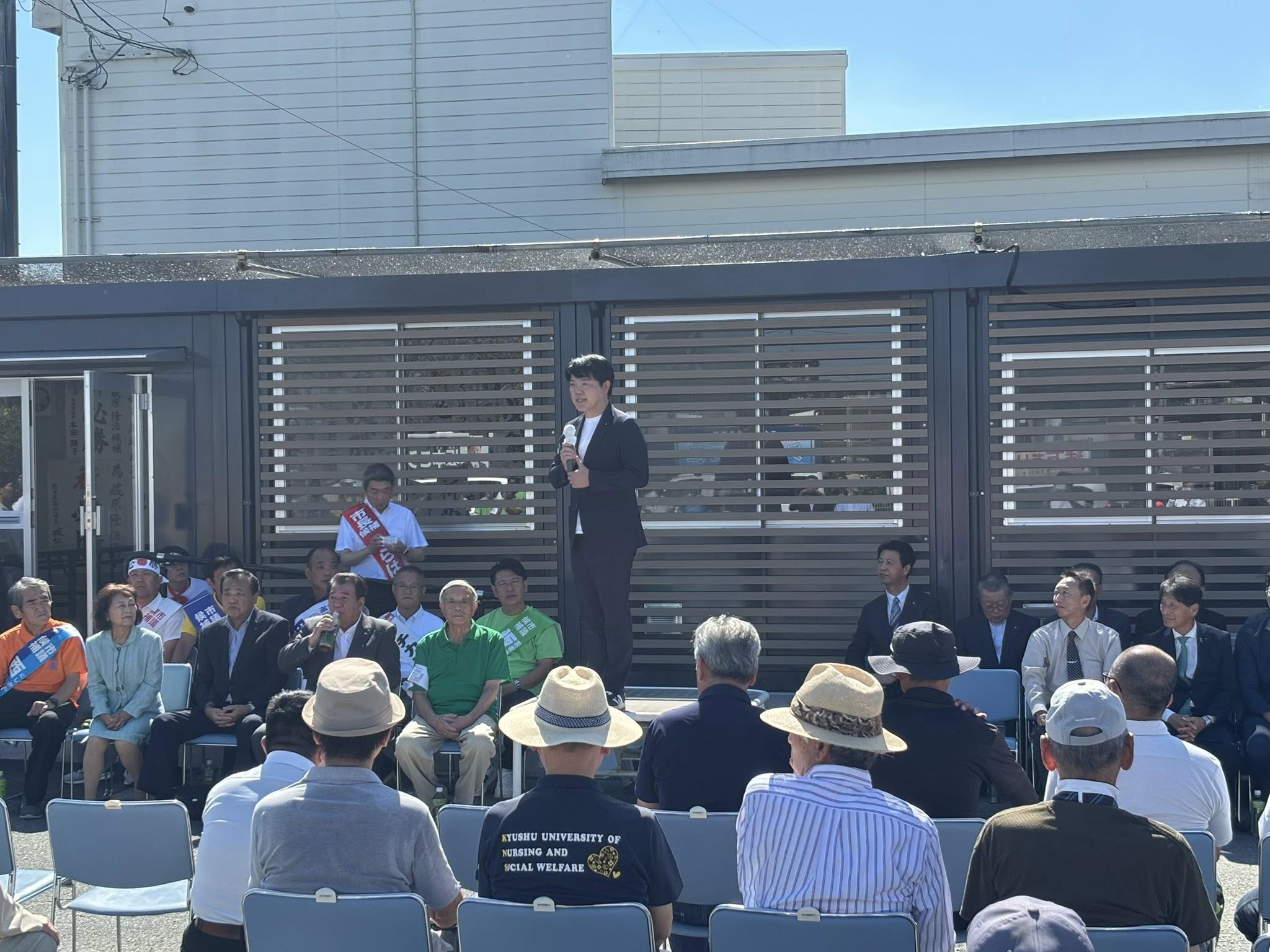 10月12日(日)、玉名市長・玉名市議選がスタートしました。3期目に向かう藏原隆浩市長候補の出陣式に出席し、激励の挨拶をさせていただきました。