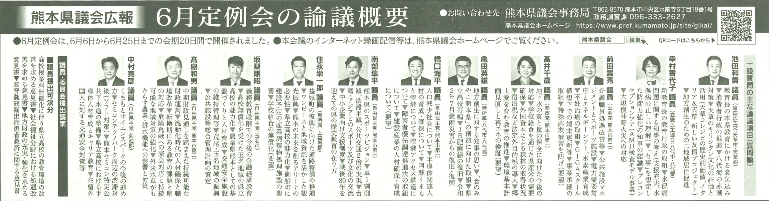 今定例会では、半導体人材の育成や県立高校の魅力化、渋滞解消の取り組み、スポーツ施設の整備など本県の課題について真剣な論議が行われました。これからも本県の課題にしっかりと向き合いながら、活動に全力を注いで参ります!