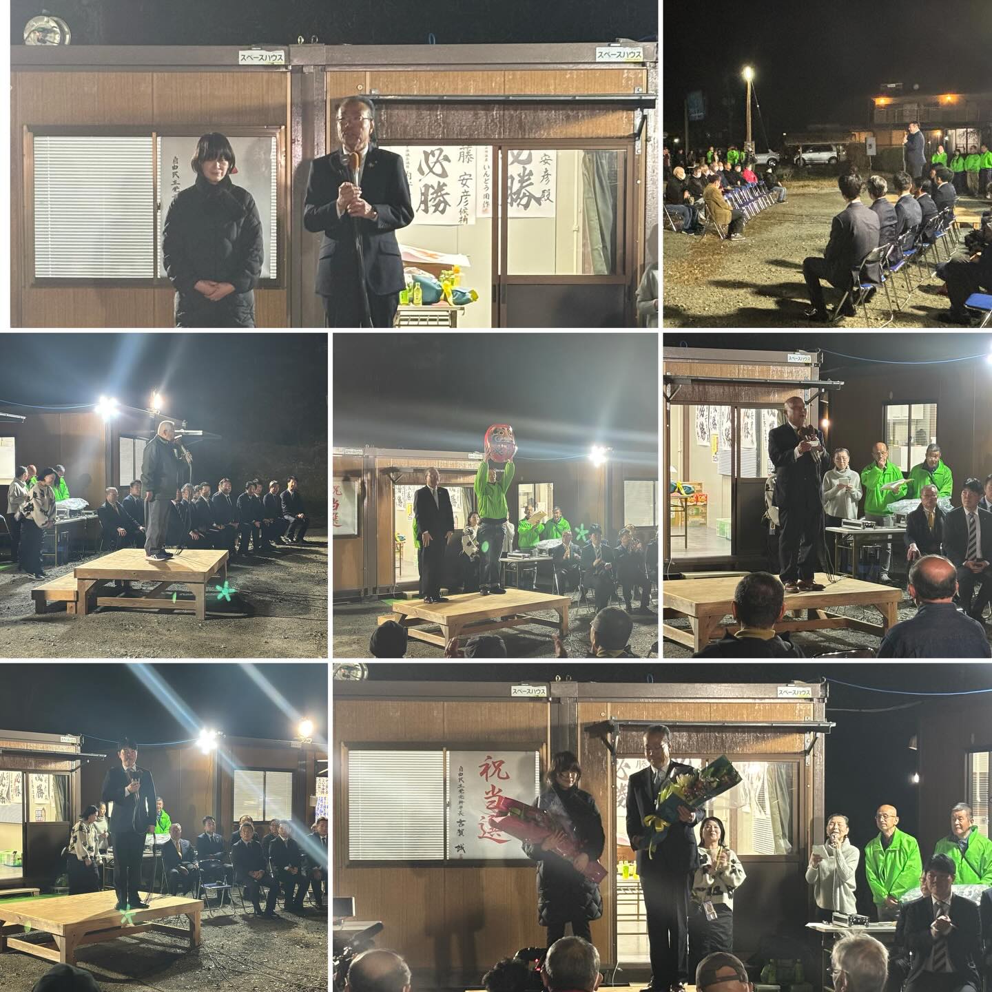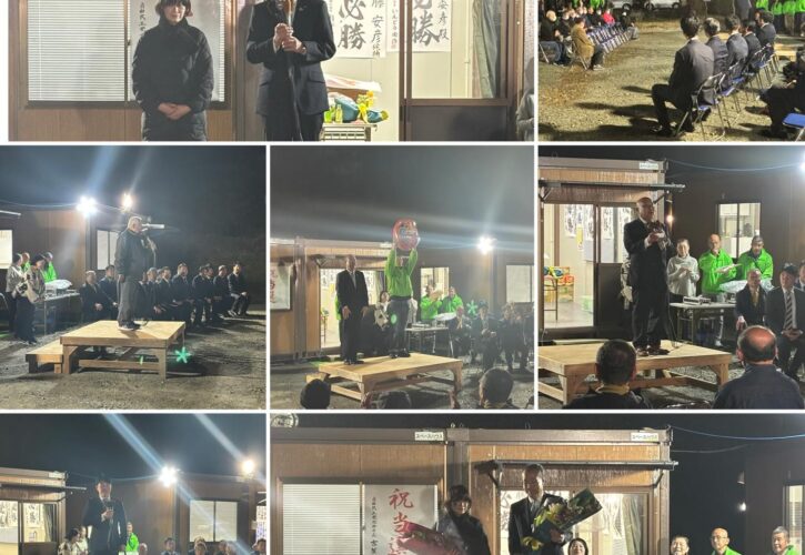 2月22日(日)、南関町長選挙の投開票日を迎え、佐藤安彦候補が4期目の当選を果たし、西野だいすけ衆議院議員、近隣自治体の首長・議長、玉名郡市の県議団らが報告会に駆けつけ、当選を祝いました。